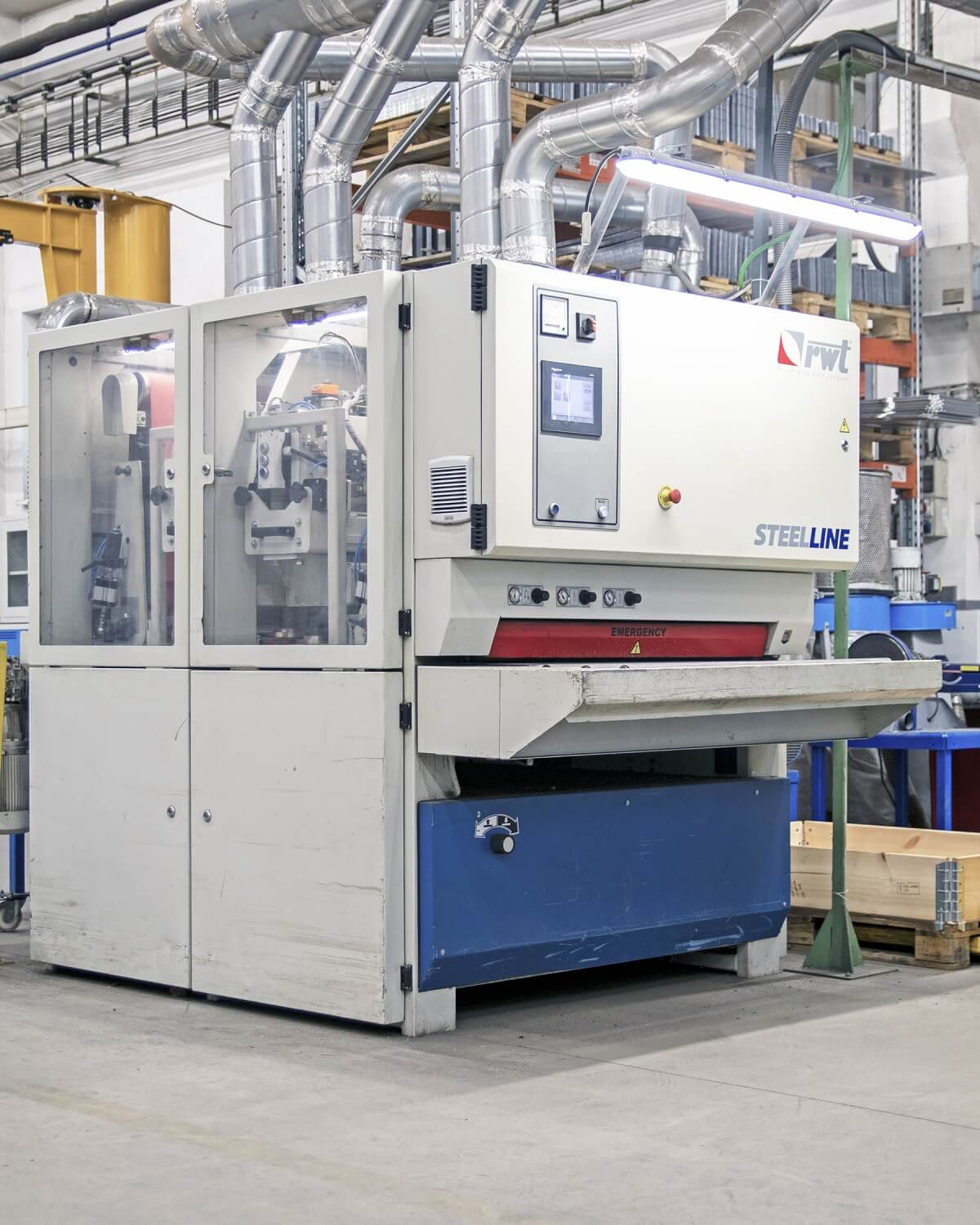- Deburring and grinding is carried out on the RWT machine with a maximum belt width of 1,040 mm.