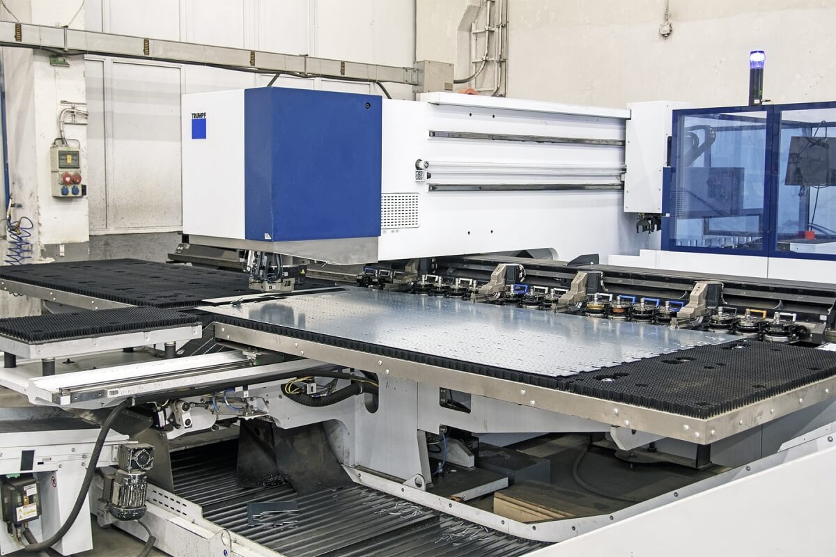 - For the punching activity we have CNC punching presses with a working area of 1,550 × 3,050 mm and a shearing force of up to 22 t.