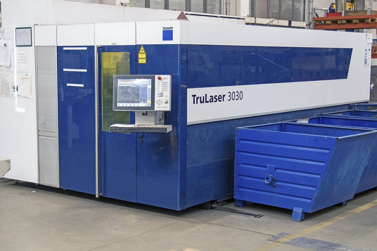 - Laser burning is performed by CNC lasers with a working area of 1,500 × 3,000 mm with a maximum material thickness of 20 mm and an output of 4 kW.