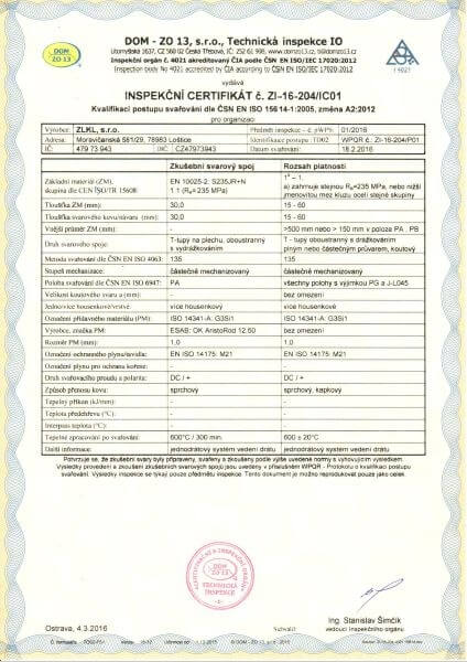 Within the robotic welding workplace we have M&P SVAR automatic welding machines and Fronius welding sources with the so-called CMT cold welding technology.